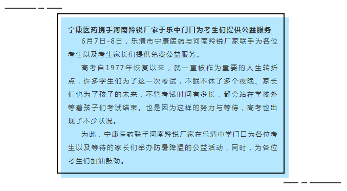 高考公益進(jìn)行時(shí),寧康醫(yī)藥聯(lián)手河南羚銳廠家為各位考生加油鼓勁!